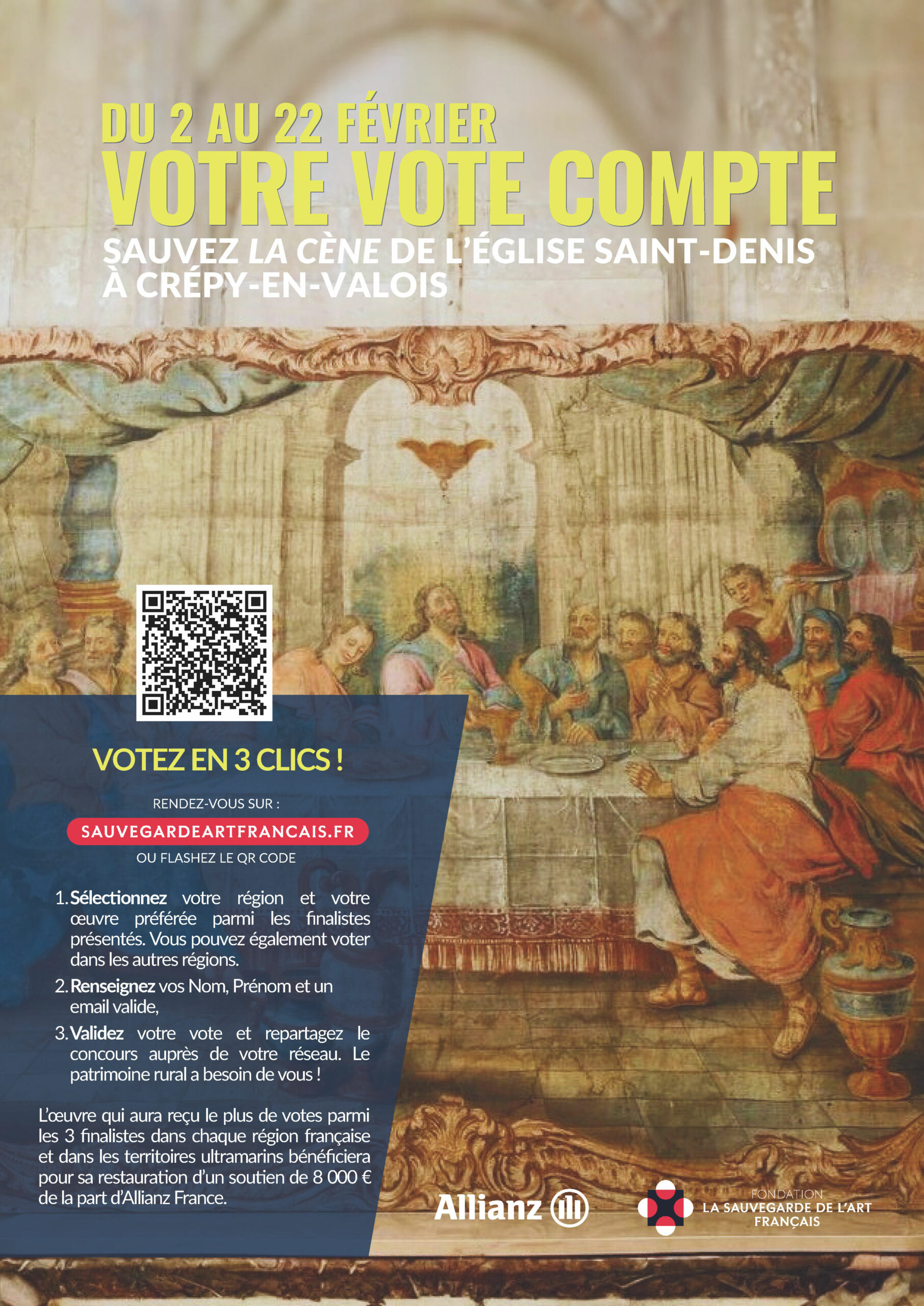 Du 2 au 22 février 2026, votez pour la Cène de l’église Saint-Denis à Crépy-en-Valois !