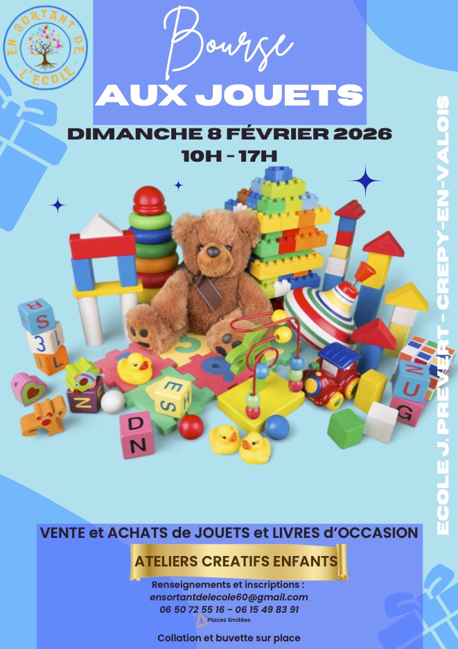 L’association En sortant de l’école organise sa 3e bourse aux jouets, dimanche 8 février 2026 à la salle des fêtes.