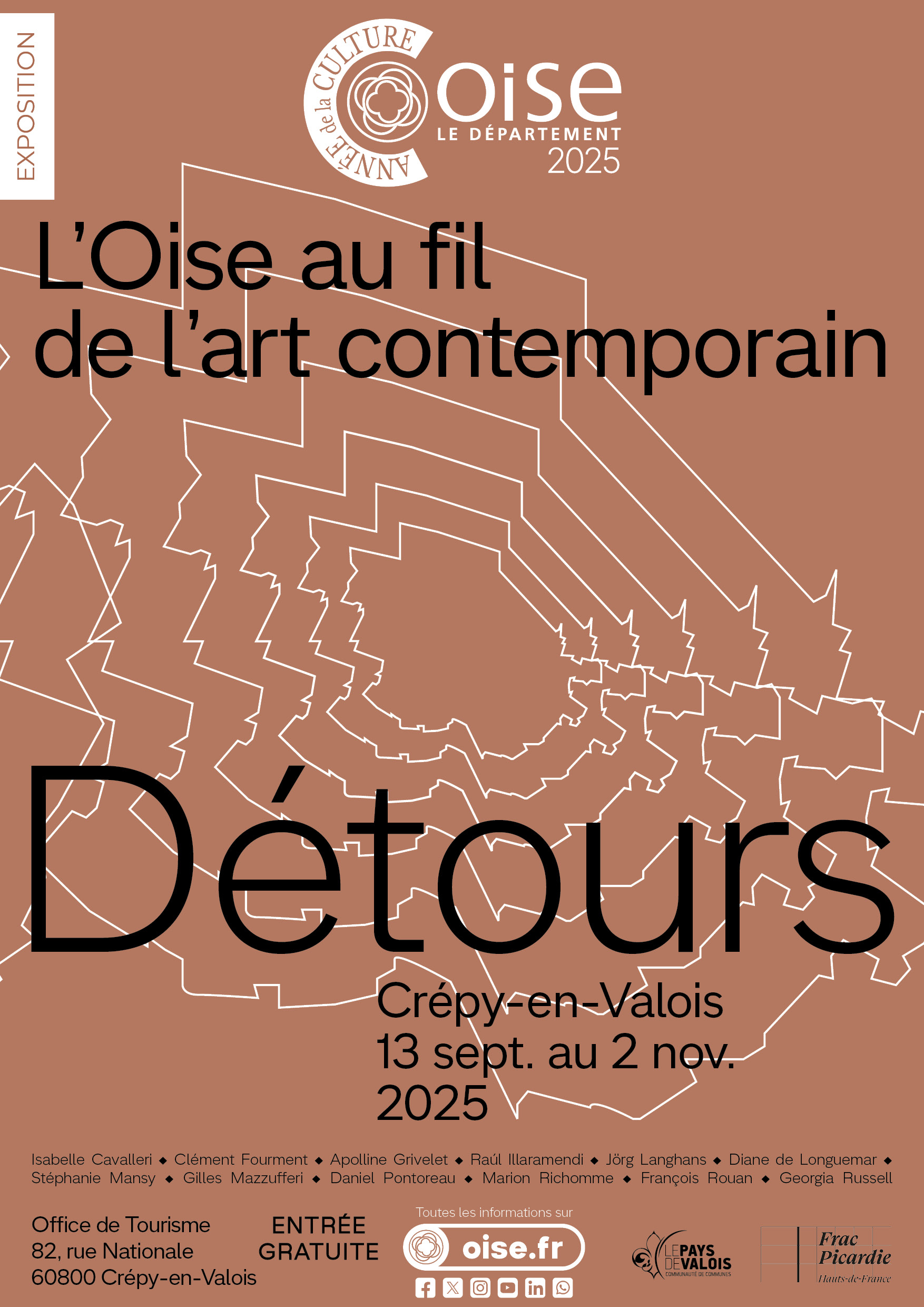 Le Département de l’Oise et le Frac Picardie lancent en 2025 une exposition inédite et itinérante, Détours : L’Oise au fil de l’art contemporain. Après Crèvecœur-le-Grand et Montchevreuil, elle fait escale à Crépy-en-Valois