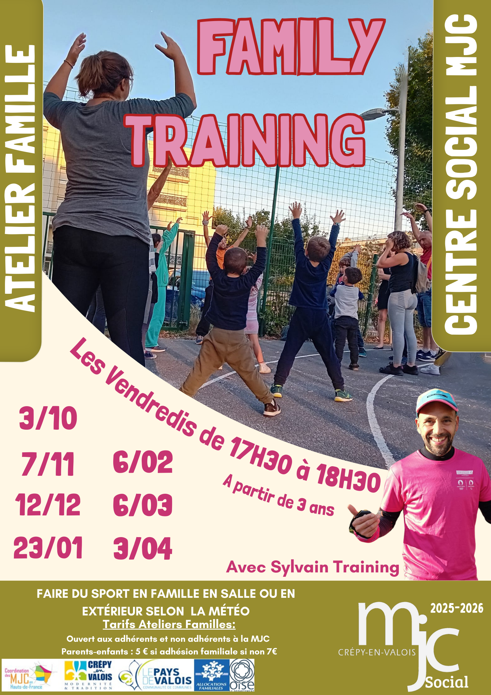 Ne manquez pas le prochain rendez-vous Family training vendredi 6 mars 2026 de 17h30 à 18h30 au gymnase Gaston Ramon.