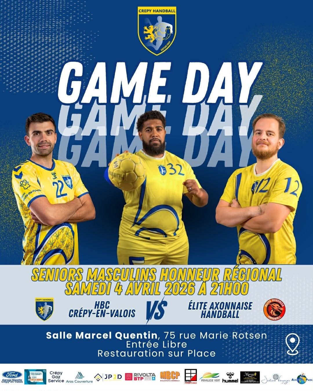 Ce samedi 4 avril à 21h, le HBC Crépy-en-Valois (1er) reçoit l’Élite Axonnaise Handball (2ème) pour un véritable match de haut de tableau.