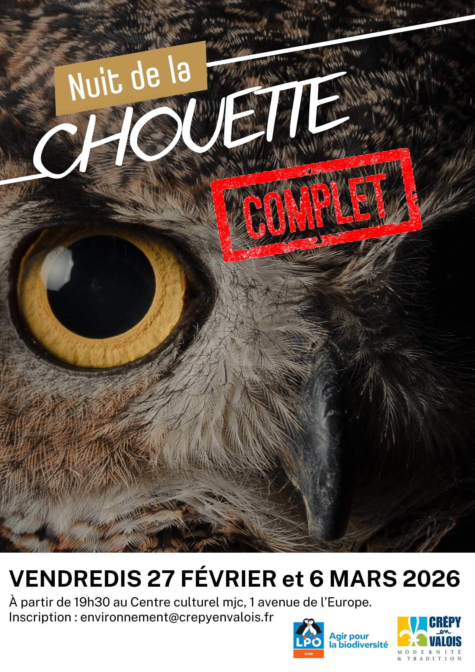 Après une présentation au centre culturel mjc, les participants se dirigeront vers le parc de Géresme pour peut-être apercevoir et entendre ces rapaces nocturnes.