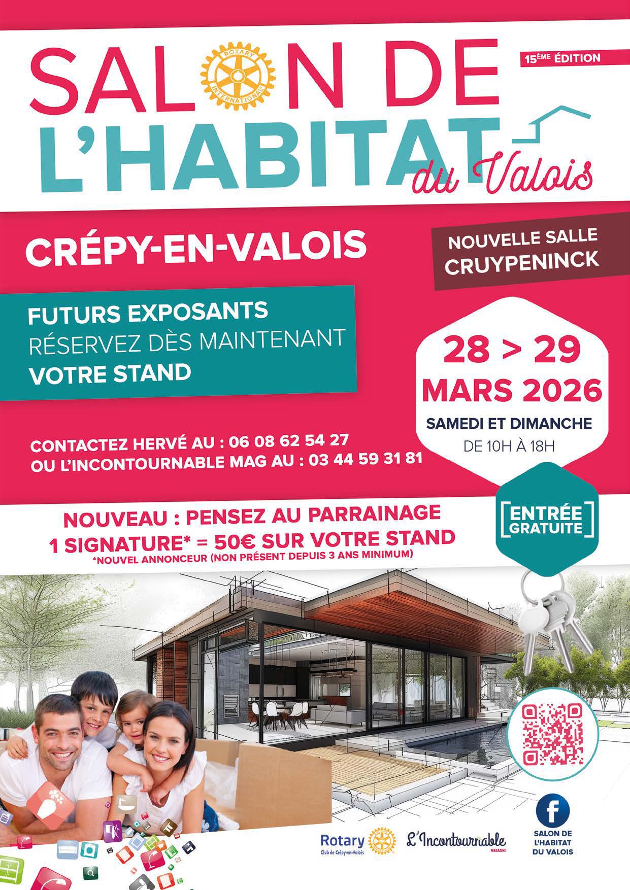 Le Rotary Club de Crépy-en-Valois vous donnent rendez-vous samedi 26 et dimanche 27 avril 2025 à la salle Irène Cruypenninck pour la 14e édition du Salon de l’habitat du Valois.