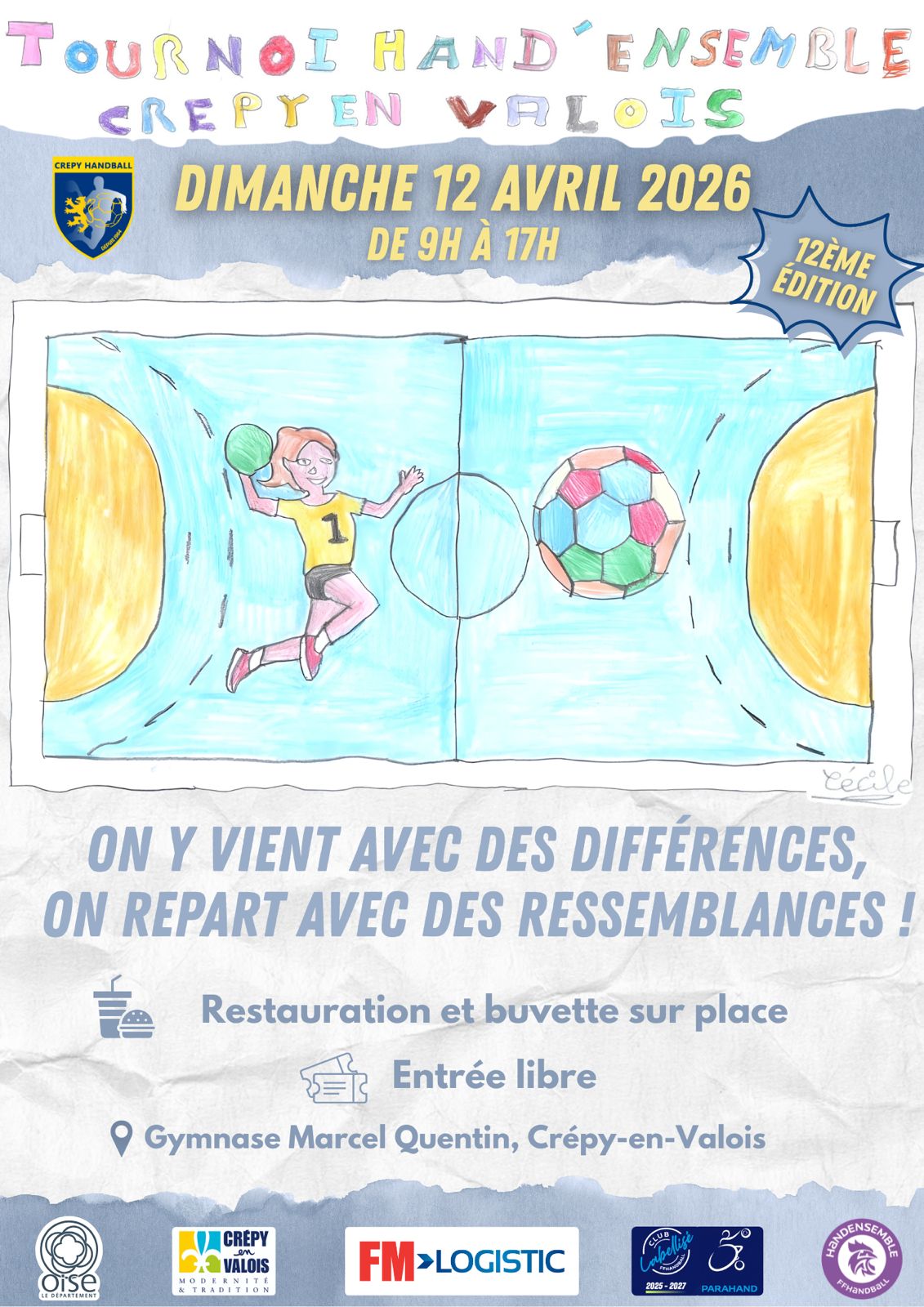 N’hésitez pas à vous rendre à la salle Marcel Quentin le dimanche 12 avril 2026 pour soutenir les participants du tournoi Hand’ensemble.